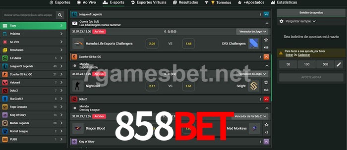 O 858bet oferece uma grande seleção de opções de apostas em e-sports com probabilidades competitivas